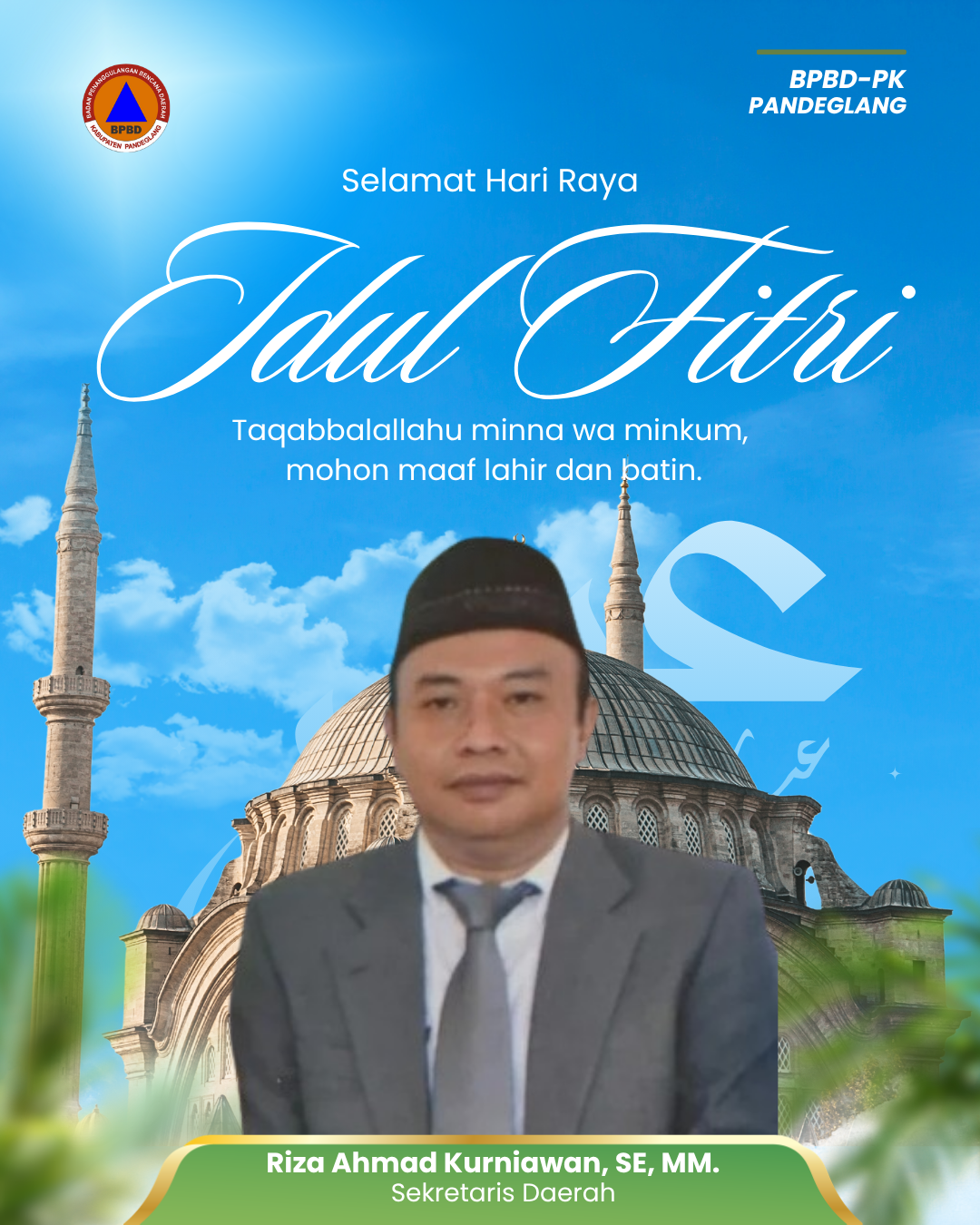 Kepala Pelaksana BPBD-PK Kabupaten Pandeglang Mengucapkan Selamat Hari Raya Idul Fitri 1447 H